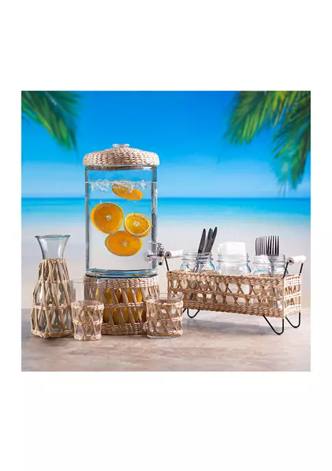 Hold 35 ounces of your favorite liquid in this carafe from Bazaar that features a natural rattan sleeves.