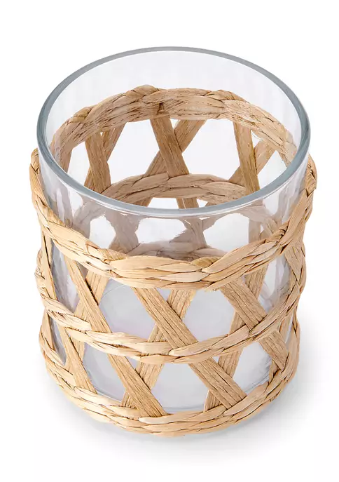 Wrapped in seagrass for an alluring finish, this glass hurricane from Bazaar makes a lovely pick for holding your favorite candle.
