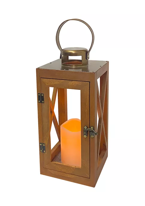An elegant home décor accent piece, this LED wood lantern from Bazaar is designed with an on/off switch at the bottom. Operates on 3 AA batteries (not included).
