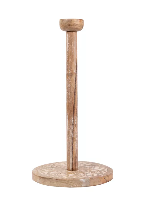 Carved out of sleek mango wood, this paper towel holder from Bazaar is featured with all-over distressing for a worn-in look.