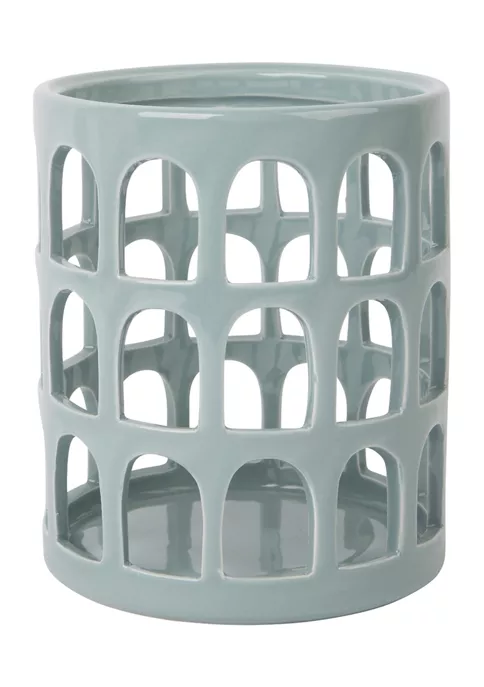 A medium blue ceramic construction makes this Bazaar hurricane an alluring pick to display your candles.