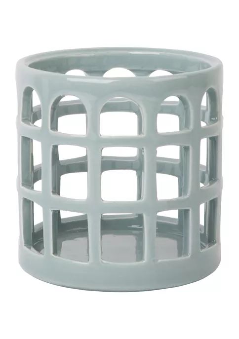 A small blue ceramic construction makes this Bazaar hurricane an alluring pick to display your candles.