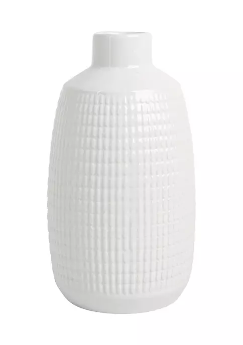 This vase from Bazaar has a shiny ceramic texture and an intricate grid design. Fill with your favorite flowers or greenery.