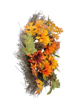 Gordon Companies Sunflowers and Pine Cones Fall Artificial Thanksgiving Wreath – 24- inch Unlit