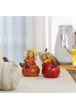 Gordon Companies Set of 3 Orange and Black Pumpkin Thanksgiving Tabletop Decors 5.5 inch
