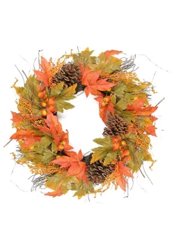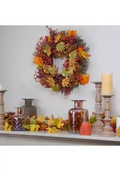 Gordon Companies Maple Leaf and Berry Twig Artificial Fall Harvest Wreath 22- inch