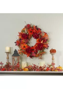 Gordon Companies Leaves and Flowers Fall Harvest Wreath – 24- inch Unlit