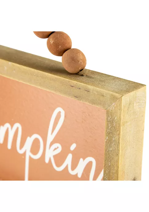 This adorable hi pumpkin sign is the perfect addition to your Autumn decor. Artfully constructed from rustic wood this quaint and simple sentiment speaks volumes. Embellished with wooden beads for hanging this sign is as sweet as pie.