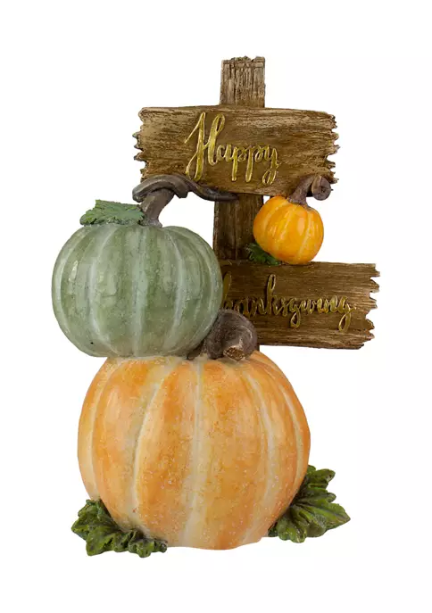 Add this fall harvest sign to your holiday decor featuring various sized pumpkins. It will add a pop of orange and green colors to compliment your Thanksgiving style. Designed with the phrase “Happy Thanksgiving” in gold writing it will be a yearly favorite to your tabletops. Great to give as a gift to family and friends.