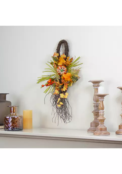 Bring some Fall cheer to your holiday decor with this lovely swag. Its unique style will be the focal point of your Thanksgiving festivities. Perfect for doors mantles or as part of your holiday table centerpiece.
