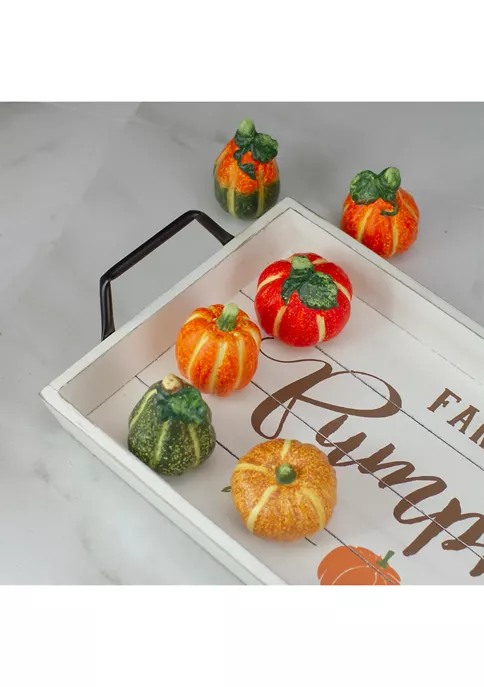 Comes with 6 different colored pumpkins