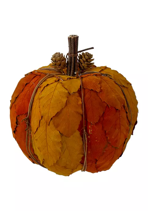This adorable pumpkin would be the perfect addition to your fall and Thanksgiving decor this year. Authentic pine cones and twigs adorn the top of the pumpkin depicting the stem and leaves. Perfect to use as a centerpiece or as an accent piece!
