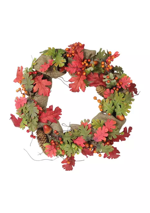 Acorn berry and burlap rustic Thanksgiving wreath