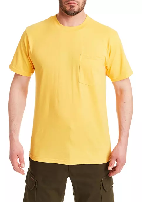 Made of cotton poly soft jersey knit fabric, this is a great basic short sleeve crew neck one pocket tee. Wear it alone or under a layer. Features quick dry wicking fabric to keep you cool and comfortable; tag less for comfort.