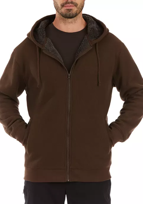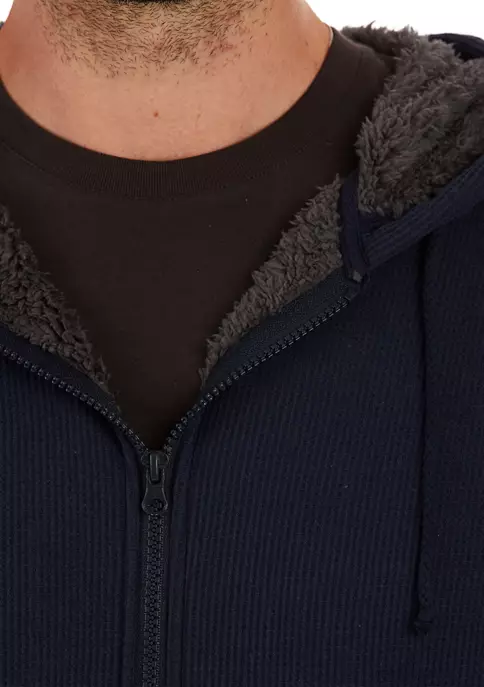 This comfortable Sherpa-lined Hoodie Jacket will be the one you grab as you’re headed out the door. Made of super-soft microfiber sherpa bonded to thermal knit, it is the perfect comfy grab & go jacket this fall & winter.