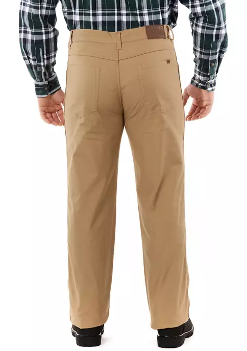The Fleece-Lined Stretch-Canvas 5-pocket Pants have been updated with a classic Buffalo printed fleece lining. They will keep you warm on very cold days but need a touch of style. Wear them cuffed over boots to show off your buffalo. You can never go wrong with classic 5-pocket pants ready to tackle cold windy fall days to winter chill days like this one. whether you’re working on the car in the driveway, or exploring the great outdoors, these pants will help keep you warm.