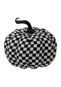 Gordon Companies 6.5 inch White and Black Plaid Fall Harvest Tabletop Pumpkin