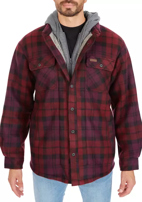 Smith’s Workwear Butter-Sherpa Lined Plaid Polar Fleece Full Zip Hooded Jacket