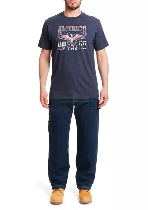 Our short sleeve Patriotic crew-neck tees are made of soft cotton/polyester to insure comfort and longevity. Choose from 4 quality printed designs to update your patriotic wardrobe this year.